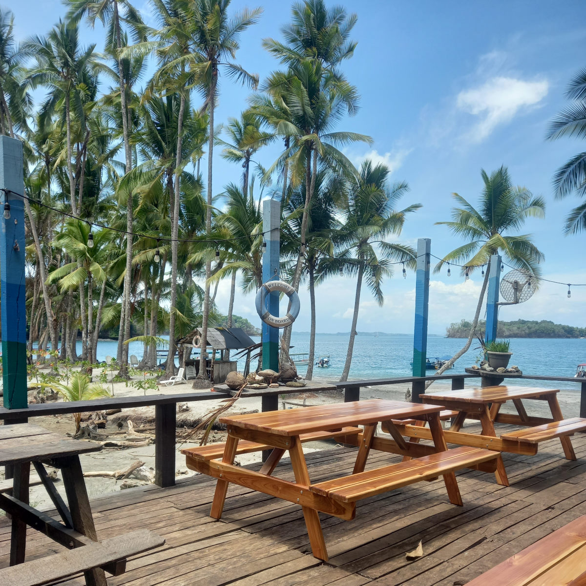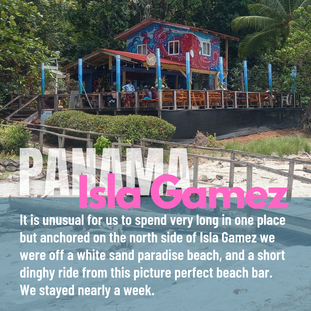 Having prearranged with the agent in Panama that would meet him to (finally) check into the country, and do our paperwork for our canal crossing, we had just two days, but this pretty, calm anchorage turned out to be the perfect finale for our cruising season. As it was Peter’s birthday we took a trip out to the sandbar, then to the resort for lunch and spent a little time relaxing by the beachside bar with a birthday cocktail. We were really impressed with the resort and the combination of ‘yurts’ and fairly luxurious cabins, together with the main dining room, plus two beaches, all set in a stunning location, definitely got our approval.