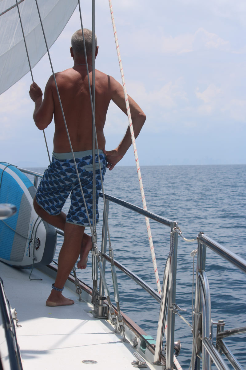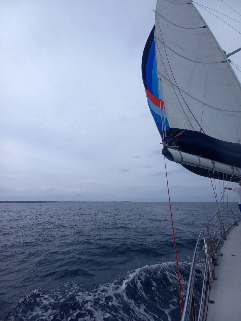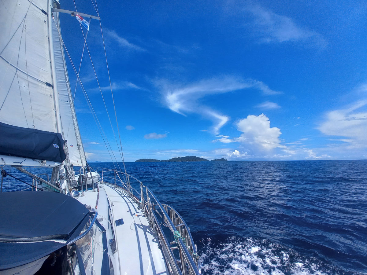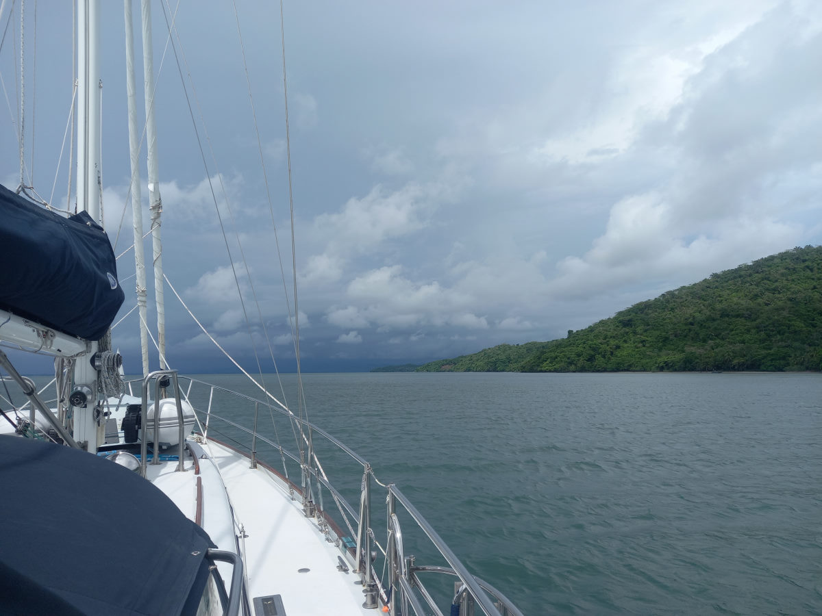 We left the beautiful anchorage at Isla Bolaño and passed just north of the sand bar/island we had been to at low tide and south of Isla Mogo to get clear of the Las Perlas, and head towards Panama City. With little wind, and what wind we did have being on the nose, we motored most of the way, with getting a lift of the sails for just the last section.