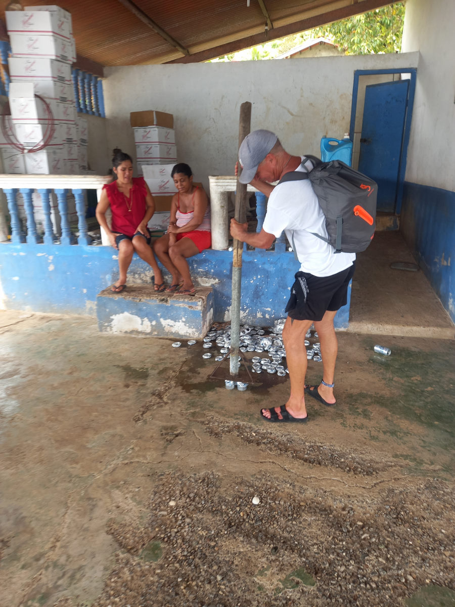 There was no restaurant in Bahía Honda, just a bar where we found two women crushing cans with a steel pole. Despite the bar having no tables and apparently a choice of only beer or white rum, we ordered some beers, and then were encouraged to buy beers for the two women. Judging by the smell of the cans of beer, they shared the refrigerator with fish. One of the women asked if we had any medication for pain for her mother who was having some issues with her shoulder and losing mobility in her arm. There was clearly no medical resources available, and we returned later with Advil. We also gave treats to a couple of dogs in the bar. They, as well as the other dogs we saw on the island were in terrible condition, most were completely flea ridden, some with little hair.