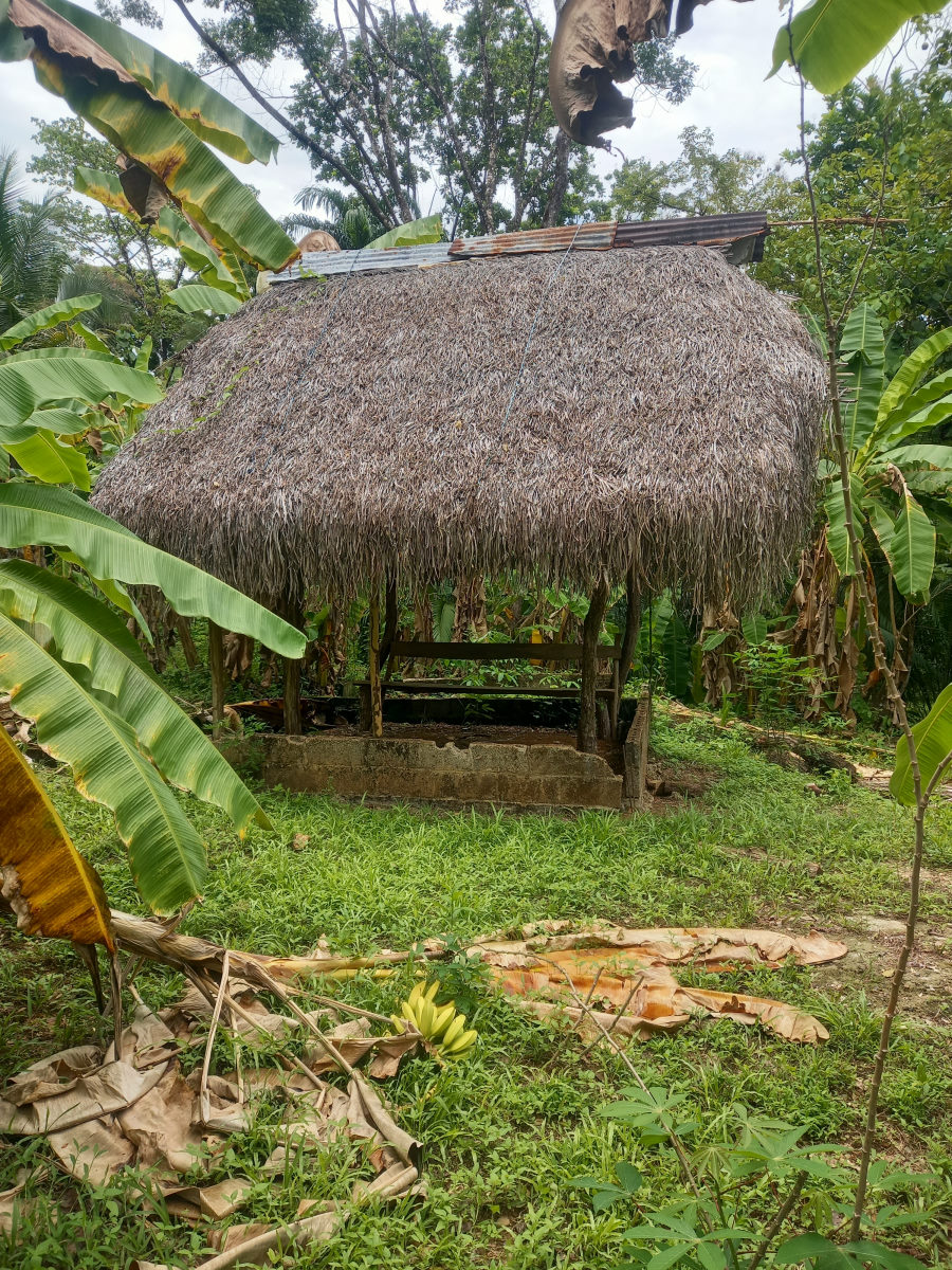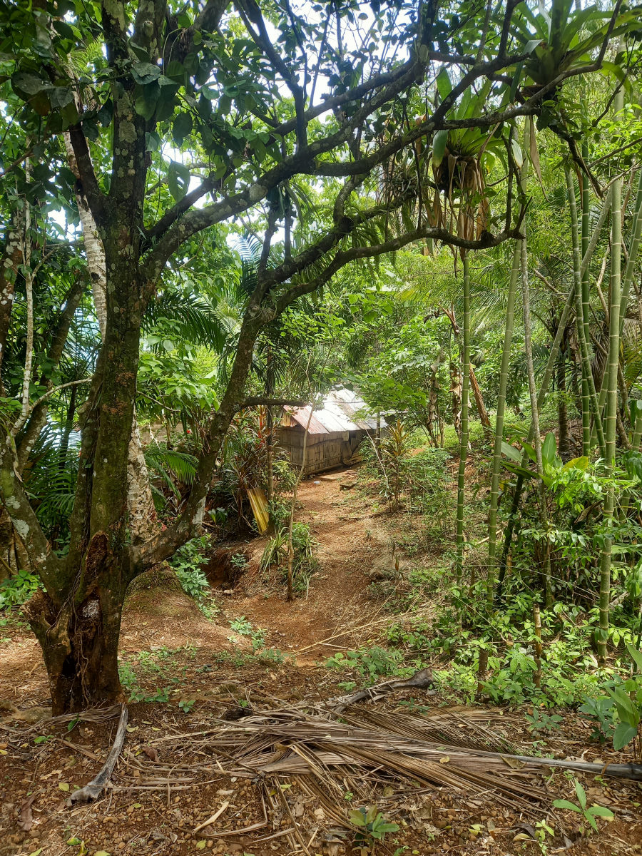 Talking with José, we learned that the island, which had been reported as for sale in the cruising guide, had been sold a few years ago to an American who had a cabin on the island. José and his family lived in a basic hut with bamboo walls and a roof of fronds. He swept the beach with a rake and looked after the island. His settlement was adjacent to a marshy area that apparently filled to a small lake in the rainy season and was home to small crocodiles. He was happy to show us around and asked if we would bring him any spare clothes we might have.