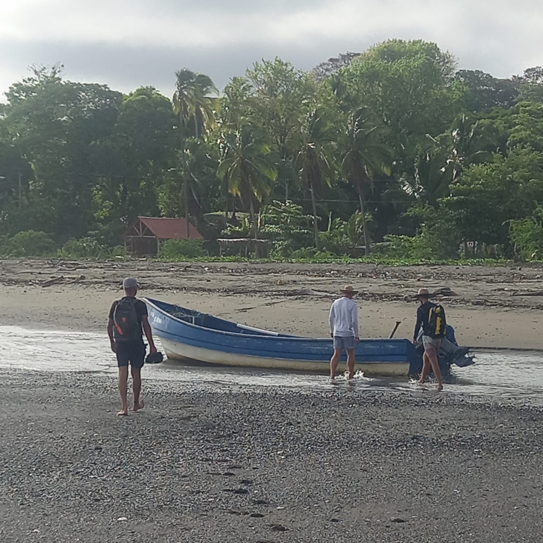 There was a surprising settlement on shore. The peninsular looks so remote, but there was a hotel and a few houses on the beach directly in front of us, as well as numerous lights on shore after dark extending up the coast towards Puerto Armuelles.
