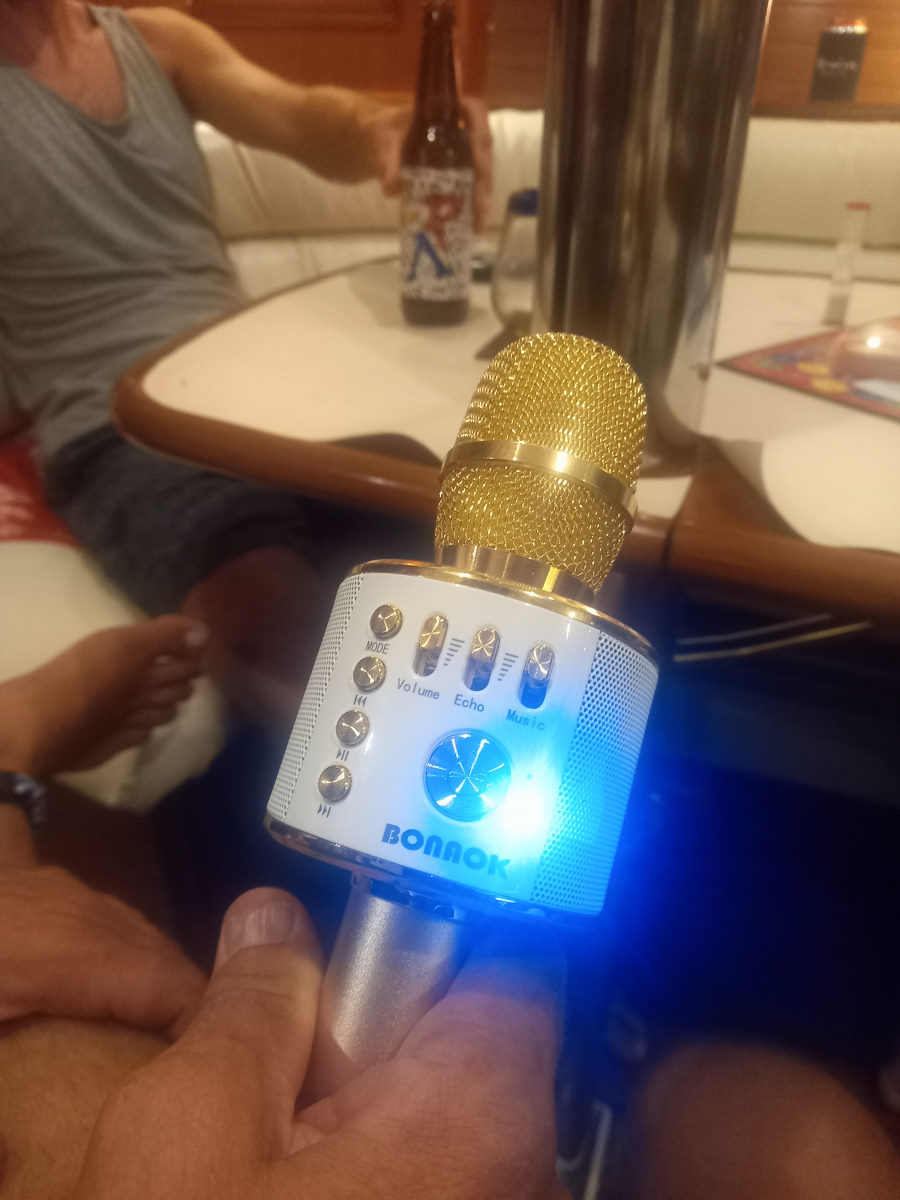 The flat water and the pleasant breeze gave for lake-like sailing conditions and there was some healthy competition between us and BOHEMIA, but as usual, while one may eek ahead at one moment, we pretty much arrive at the same time. With some very dark clouds looming over the anchorage, and a threat of squally conditions, we put the sails away a mile or so out. Evening on board BOHEMIA, playing a game specifically designed for me to lose; singing lyrics to songs that feature the word on a chosen card … WHAT THE …!