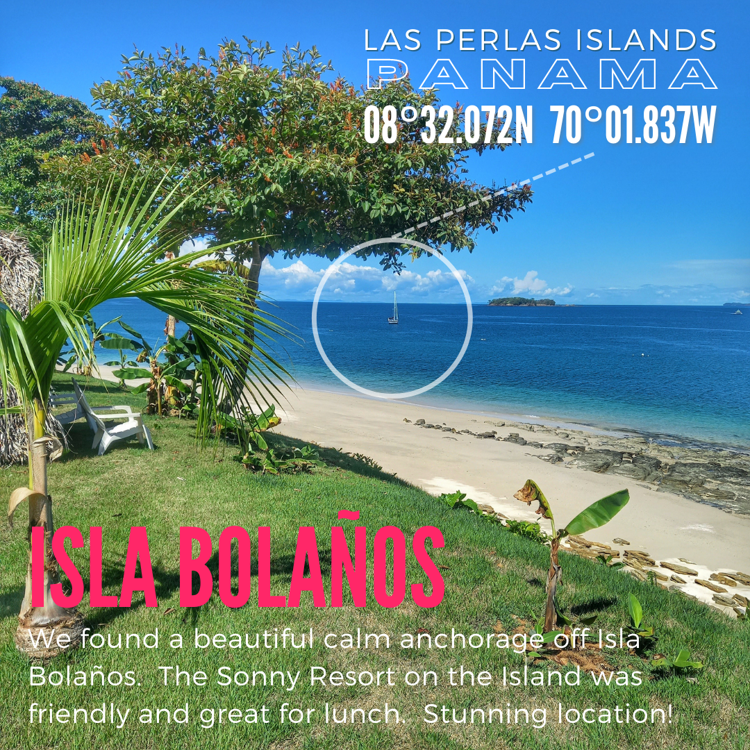 We weighed anchor with the intended destination of a small gap just north of Isla Mogo, but when we got there, it did not look comfortable, and we headed for a ‘plan B’, but saw a small sailboat anchored off a white sand beach, and diverted to check it out, and there we stayed for two days. Isla Bolaño is a small island almost entirely taken up with a glamping Sonny Resort. The beach was perfect, the water clear, and just a mile away is a dramatic sandbar island that almost entirely disappears at high tide.
