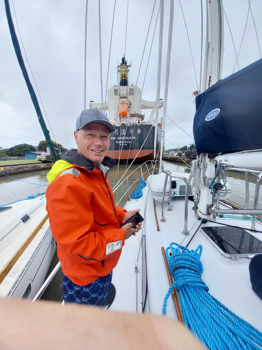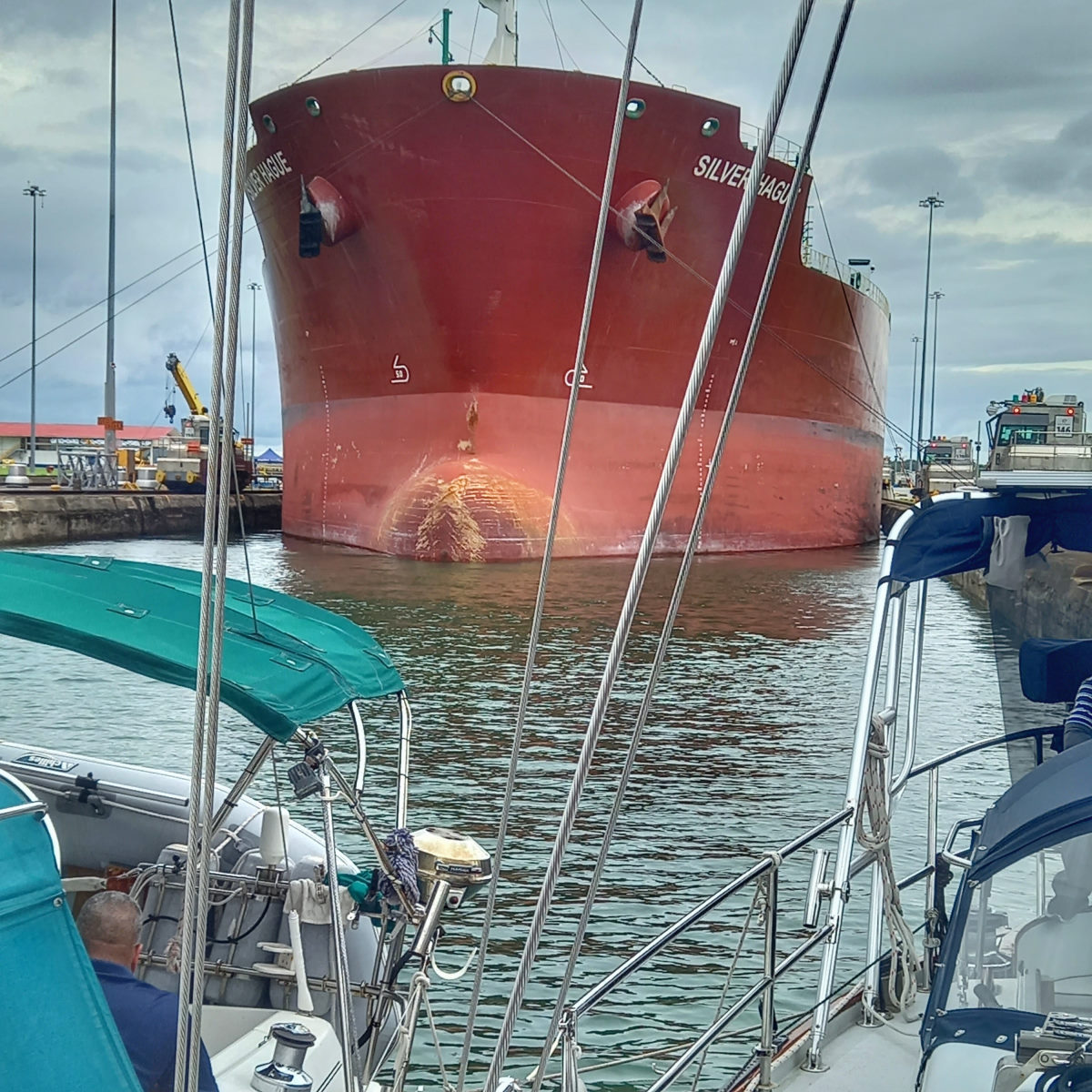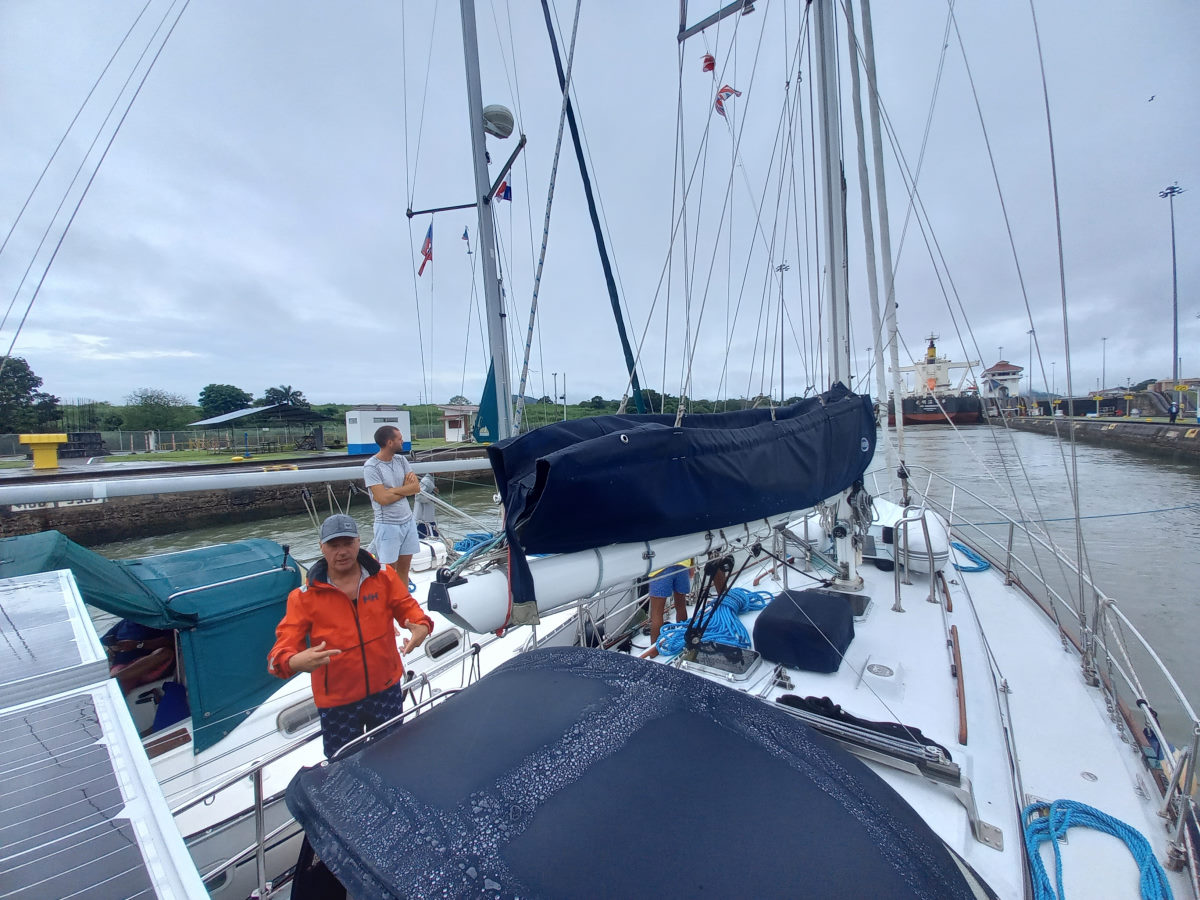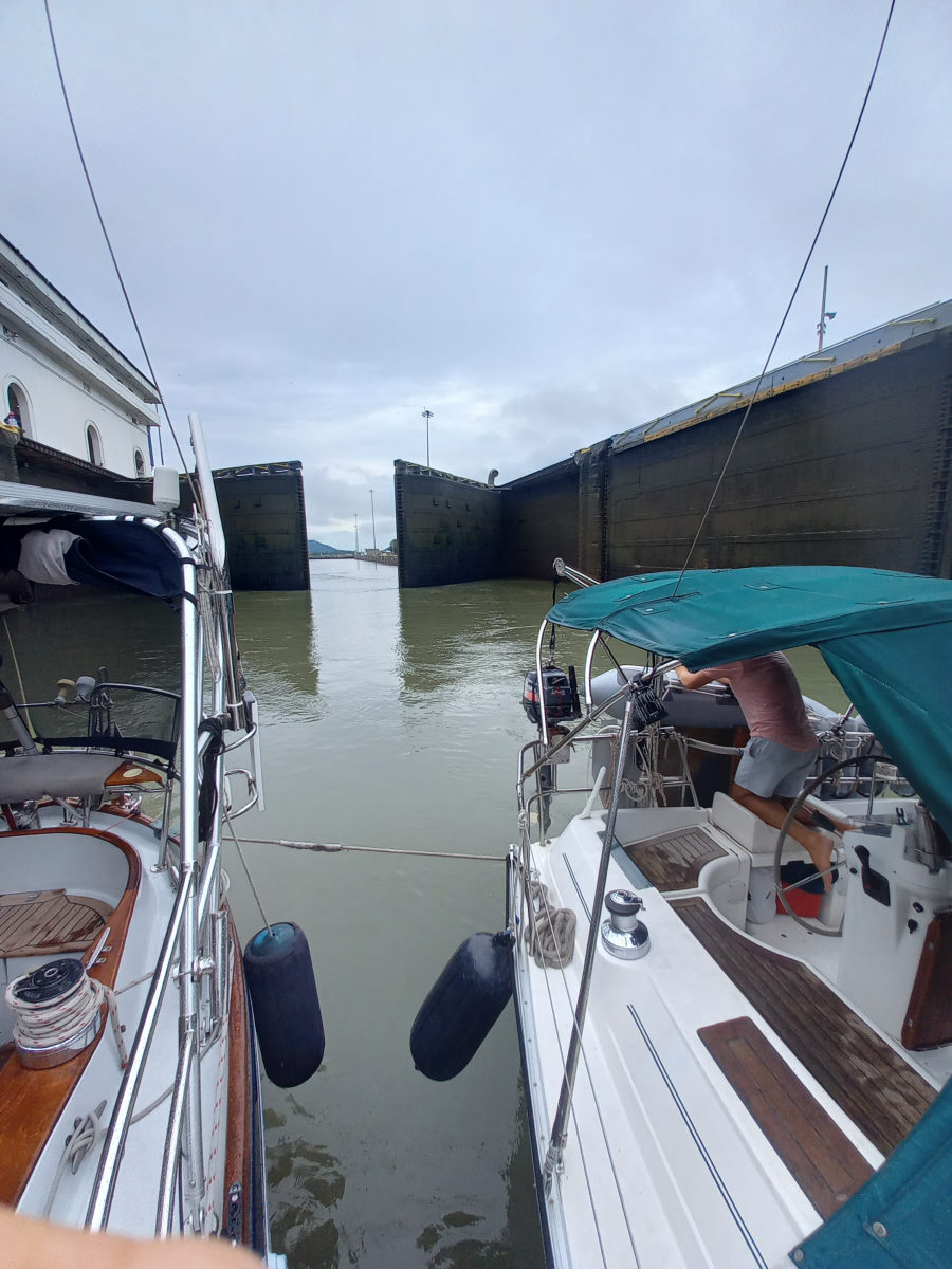 We entered each of the three locks, tied to the side wall, and Bohemia then tied alongside. There was an upbeat mood on both boats, the line handlers were happy not to be spending a night on a random boat in the middle of a lake, and the Boundless and Bohemia crew excited for the prospect of completing the transit and entering a new ocean. The only tense moments were for Tom and I as maneuvering the boats between the three locks was challenging; there was a substantial current that would propel the boat at an alarming speed and resisting the speed made steerage almost nonexistent.