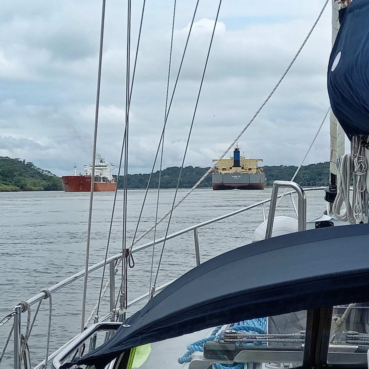 It was an early start, meeting our line-handlers at 4:00am and feeling our way out of the marina in light rain and in the dark. We moved over to the designated meeting point close to buoy ‘6’ of the entrance channel to wait for our Canal transit advisor, and the three line-handlers were quick to make themselves at home down below. Just after 5am we saw a launch approaching quickly and within a few minutes we were introducing ourselves to Armando, who gave us the instruction to raise the anchor and get under way. He clarified that were in fact scheduled for a two-day transit of the canal, and unless anything changed, we would be spending the night in Gatun Lake and completing the journey the following day. This was news to us as we had understood we were scheduled for a one-day crossing. It also raised a few questions such as what to feed the three hungry looking guys for an unplanned meal that evening, and, where were they going to sleep?