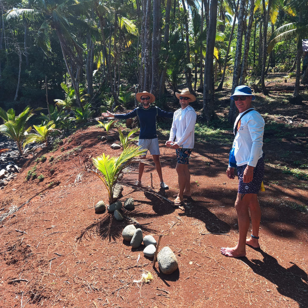 We left the quiet of the anchorage towing the dinghy and not expecting the big ocean swell. The route also took us through a maze of small islands and reefs. At one point we ran over a palm frond and heard a ‘clunk’ but after a few turns of the wheel and putting the boat back into forward gear, all seemed okay, but we never saw the frond appear behind the back of the boat, so I still dived under the boat when we arrived to check all was fine.